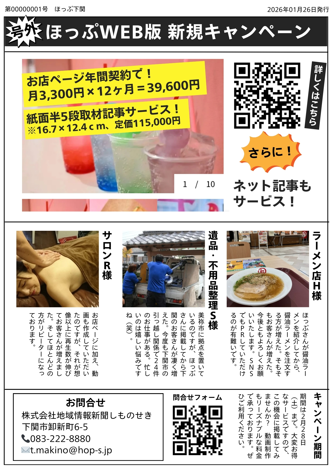 創業14年。下関市内ほぼ全域にお届けしている地域密着型情報紙です。