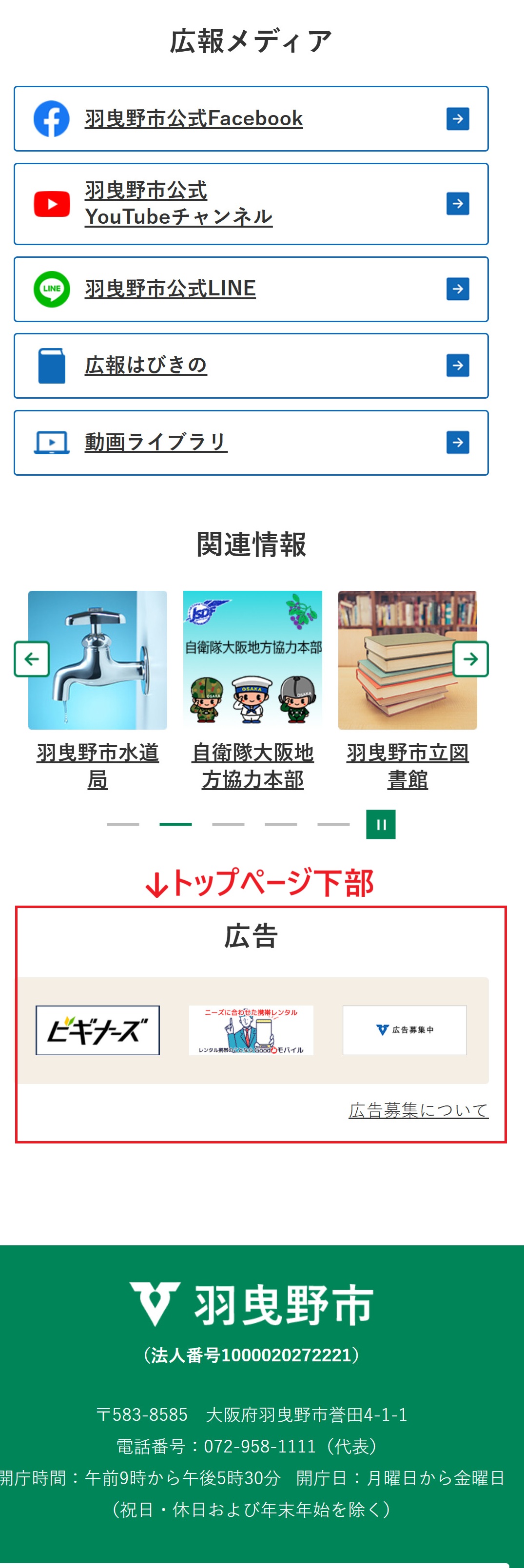 羽曳野市ホームページ バナー広告