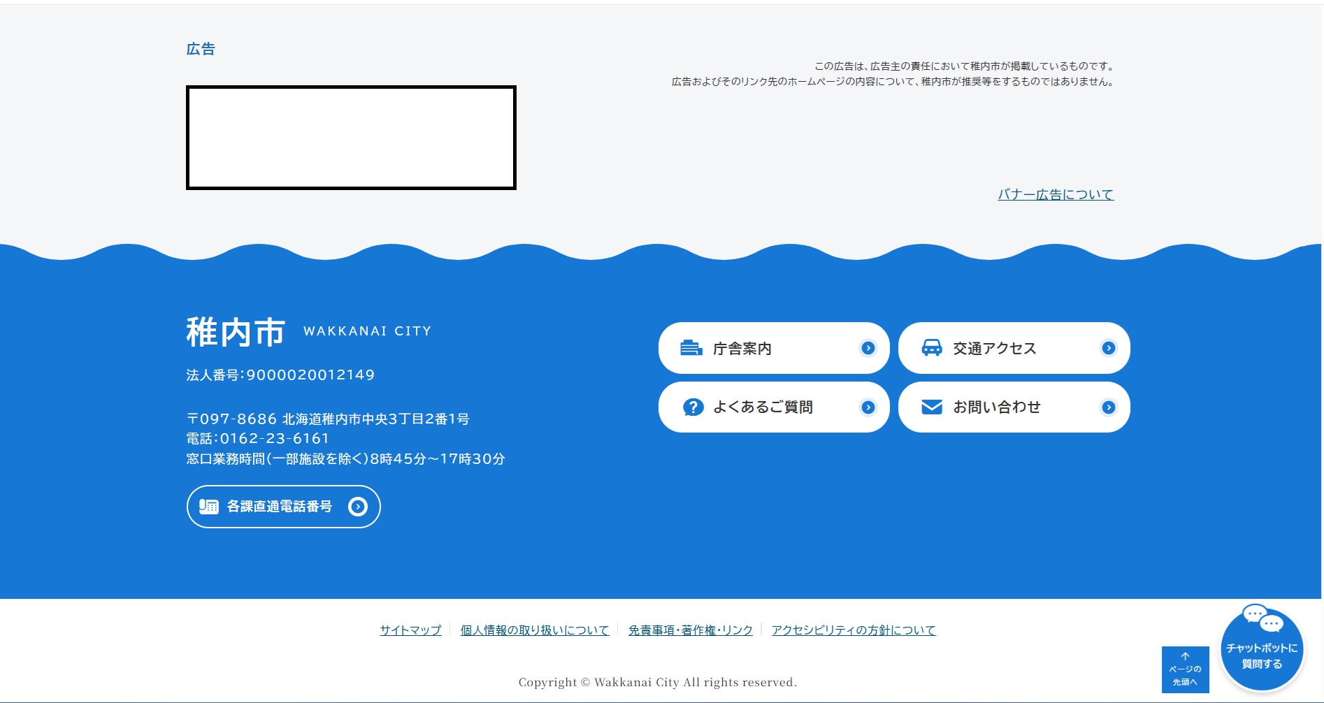 稚内市ホームページのTOPページに貴社のバナー広告が出せます。