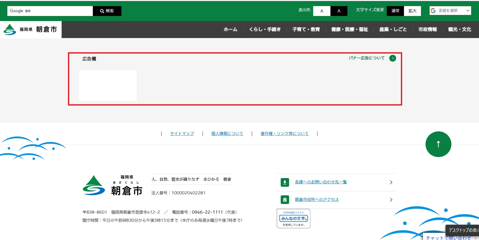 【朝倉市ホームページバナー広告】トップページ下部に掲載可能!