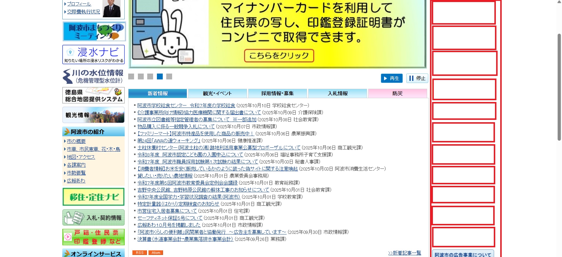 阿波市のホームページのTOPページに貴社のバナー広告が出せます。