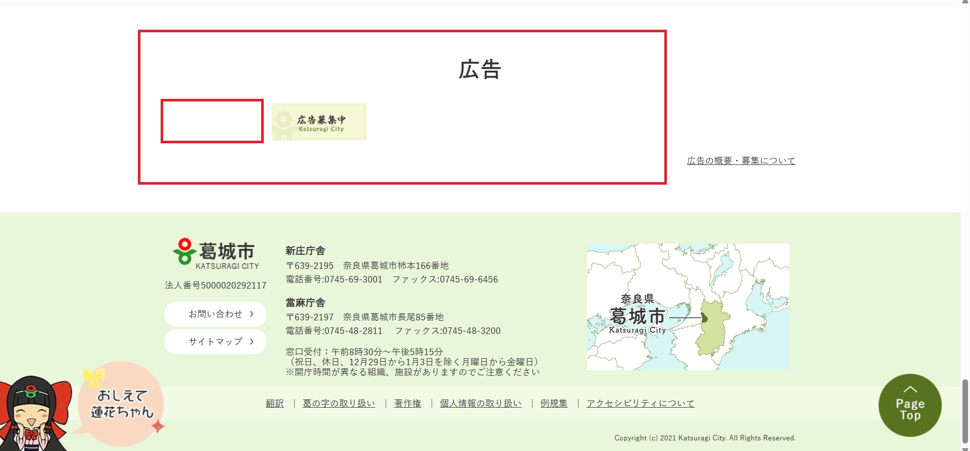 葛城市ホームページのTOPページに貴社のバナー広告が出せます。