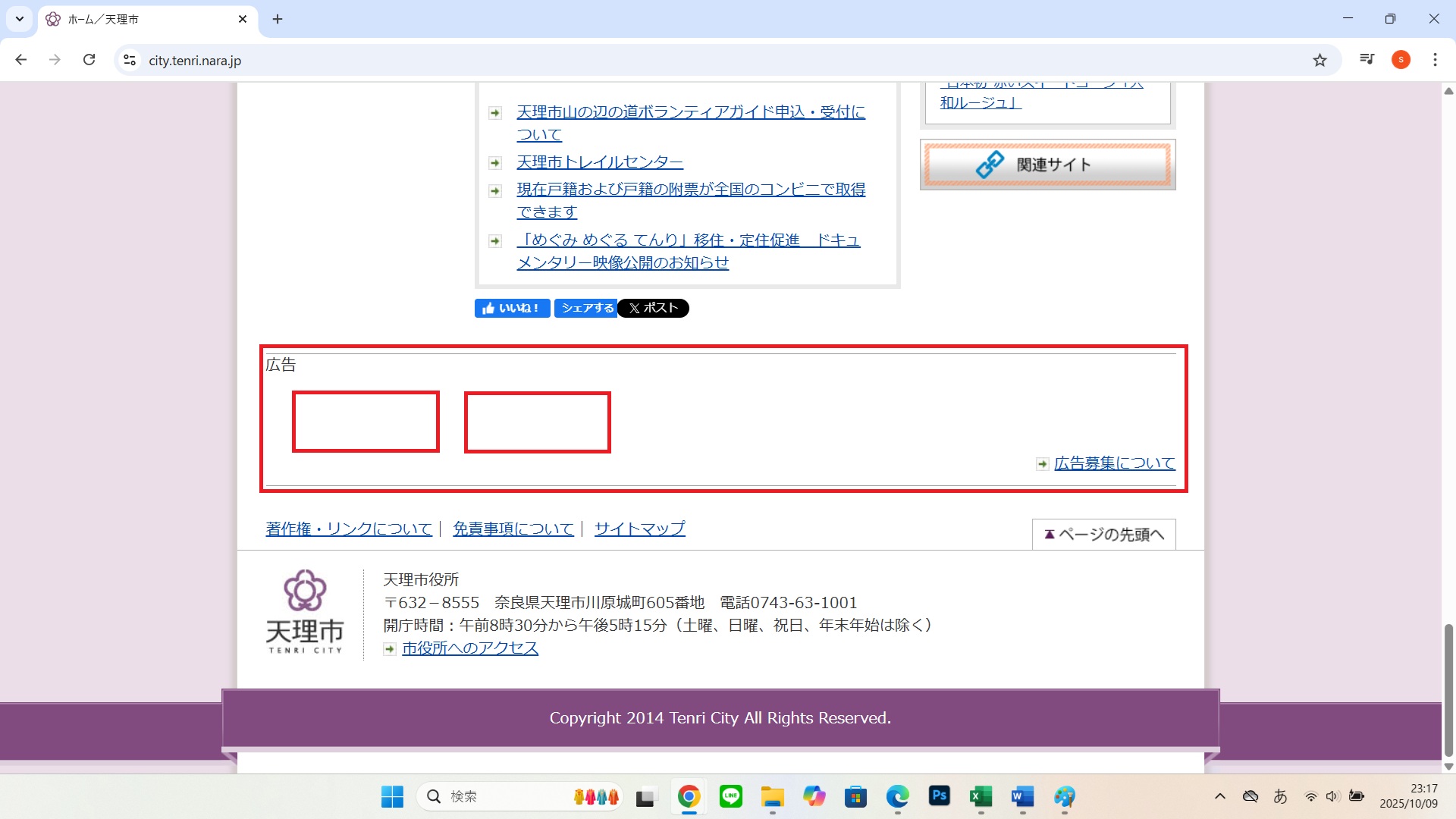 天理市ホームページバナー広告
