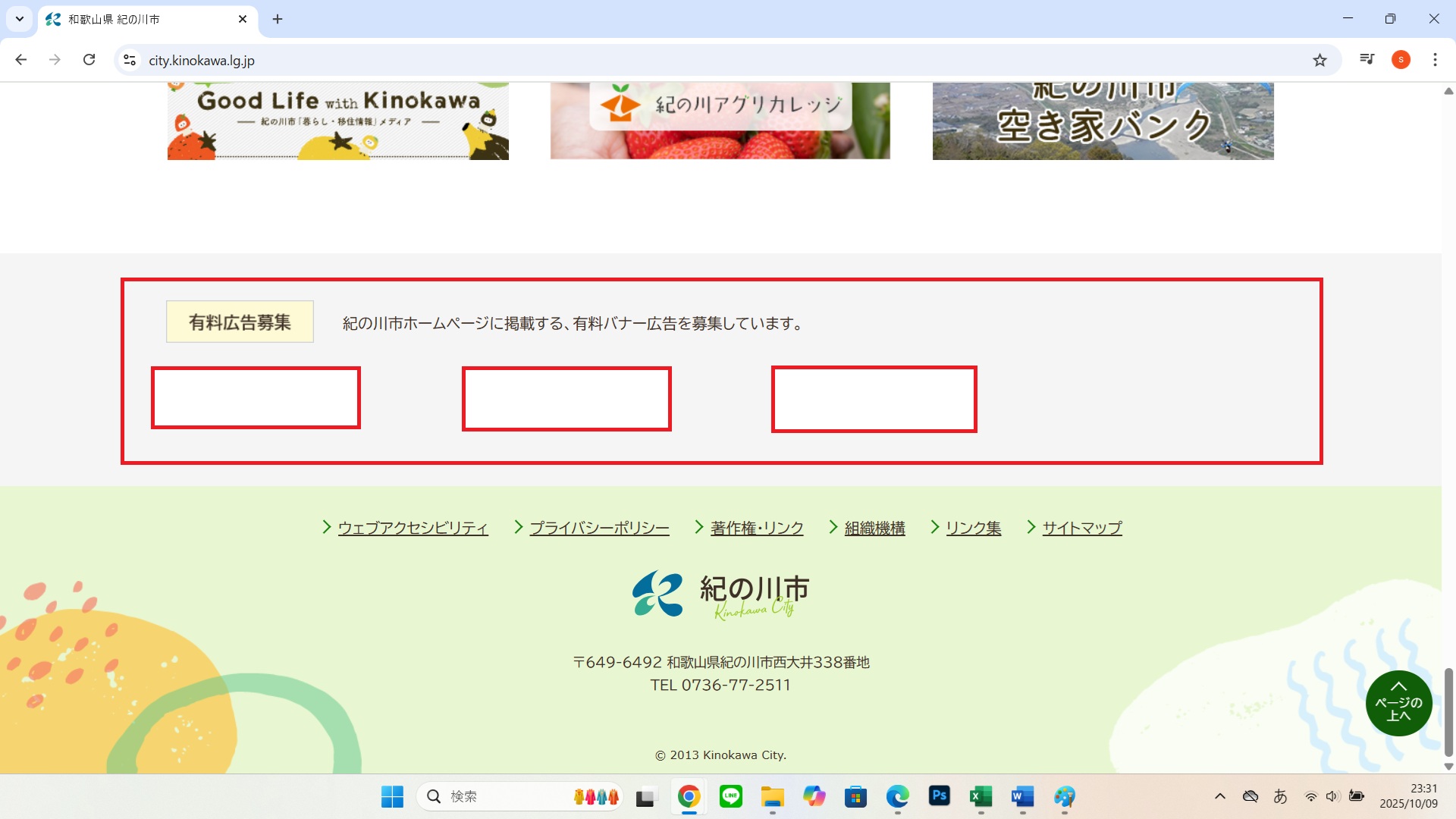 紀の川市ホームページのTOPページに貴社のバナー広告が出せます。