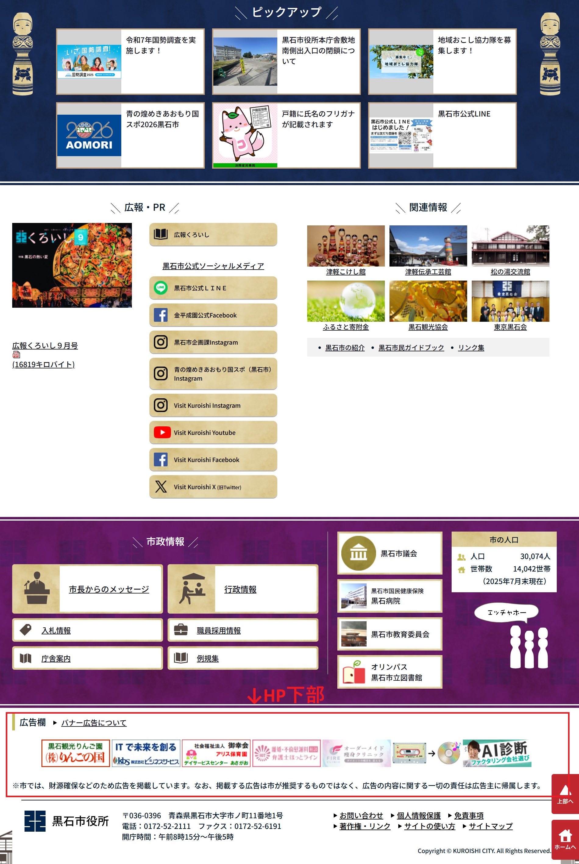 黒石市ホームページのTOPページに貴社のバナー広告が出せます。