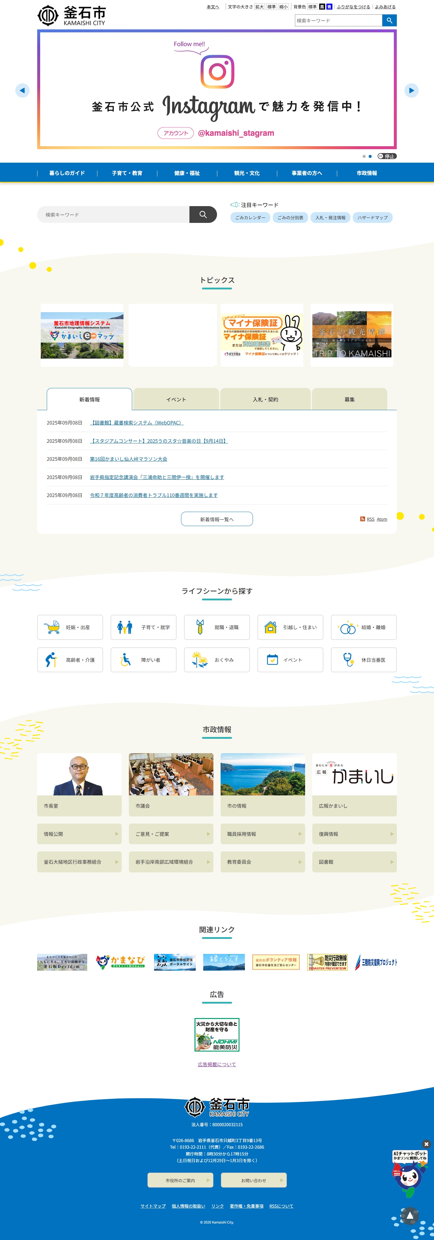 【釜石市ホームページ バナー広告】釜石市の公式ホームページ★トップページに掲載!