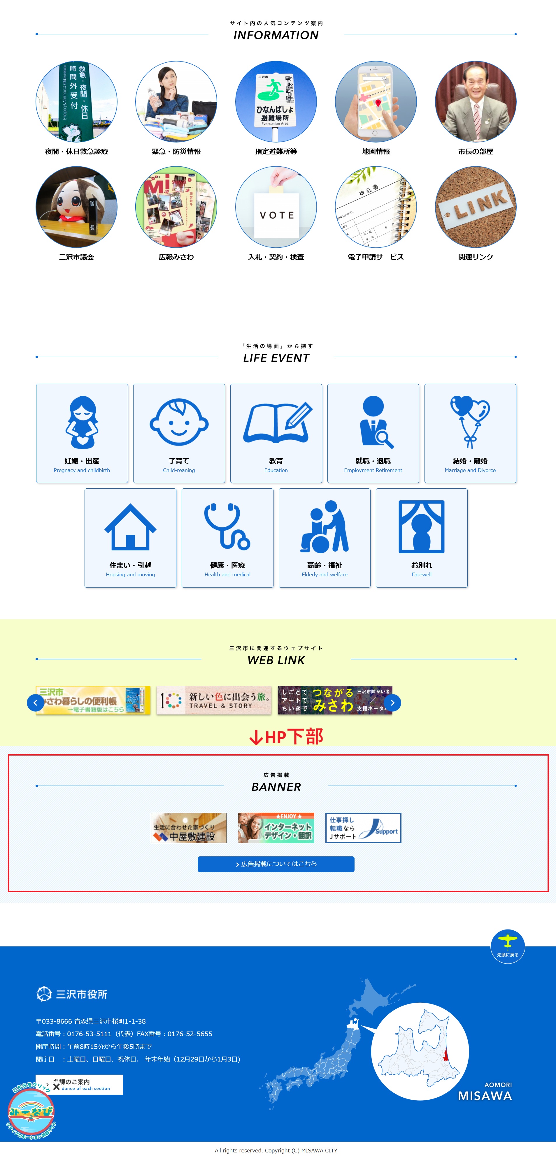 三沢市ホームページのTOPページに貴社のバナー広告が出せます。