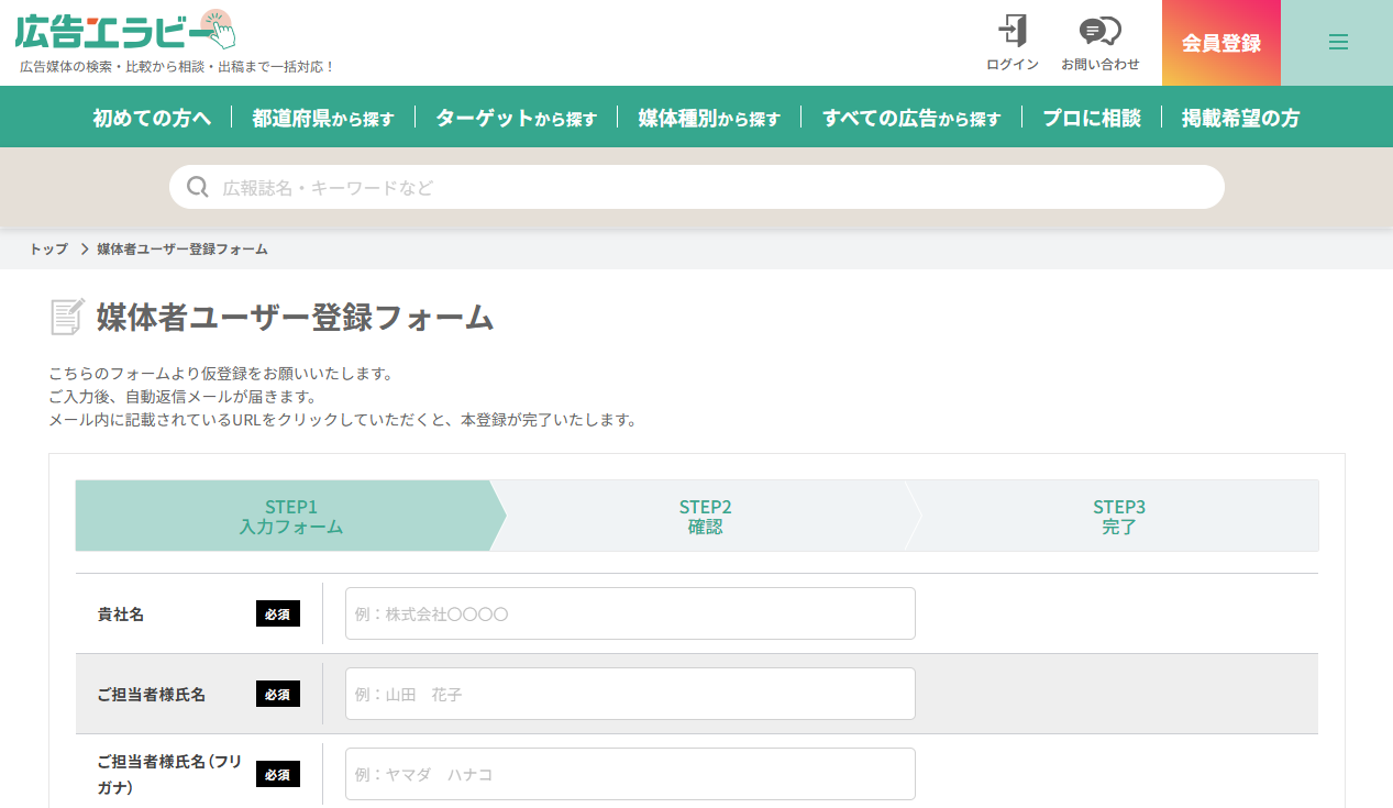 広告出稿を検討する企業・店舗・自治体向けに、全国の広告媒体を検索・相談・出稿まで一括で行えるWebサービス「広告エラビー…